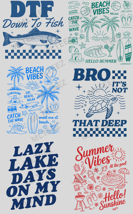 DOWN TO FISH/BEACH VIBES PREMADE GANGSHEET - 22X36 DTF TRANSFERS - DIRECT TO FILM