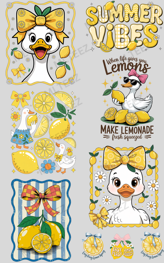 SUMMER LEMONS/DUCKS PREMADE GANGSHEET - 22X36 DTF TRANSFERS - DIRECT TO FILM