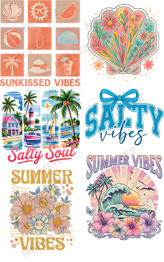 SUMMER VIBES (1) PREMADE GANGSHEET - 22X36 DTF TRANSFERS - DIRECT TO FILM