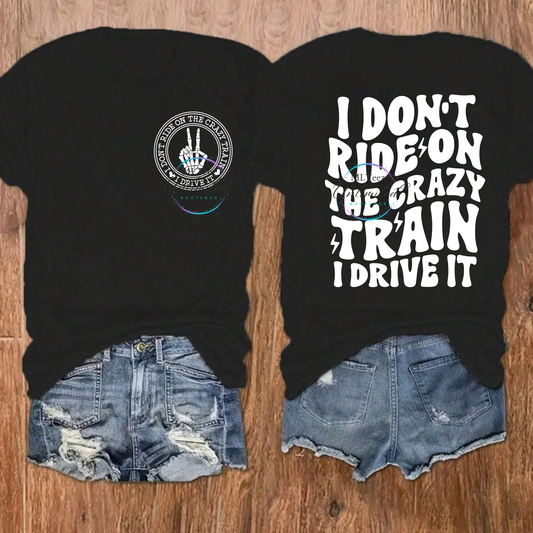I Don't Ride On The Crazy Train I Drive It (White) DTF Direct To Film
