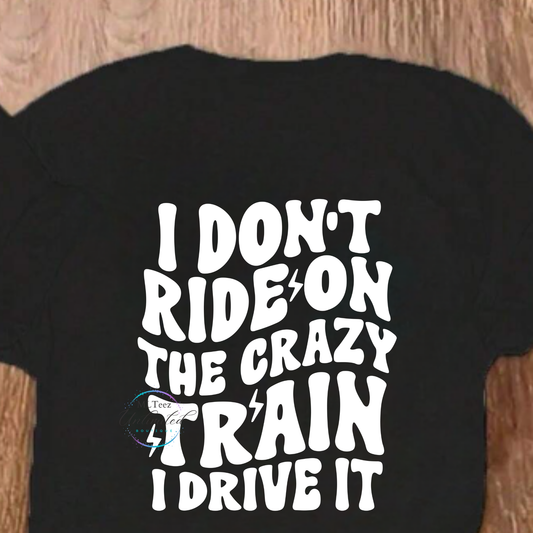 I Don't Ride On The Crazy Train I Drive It (Black) DTF Direct To Film