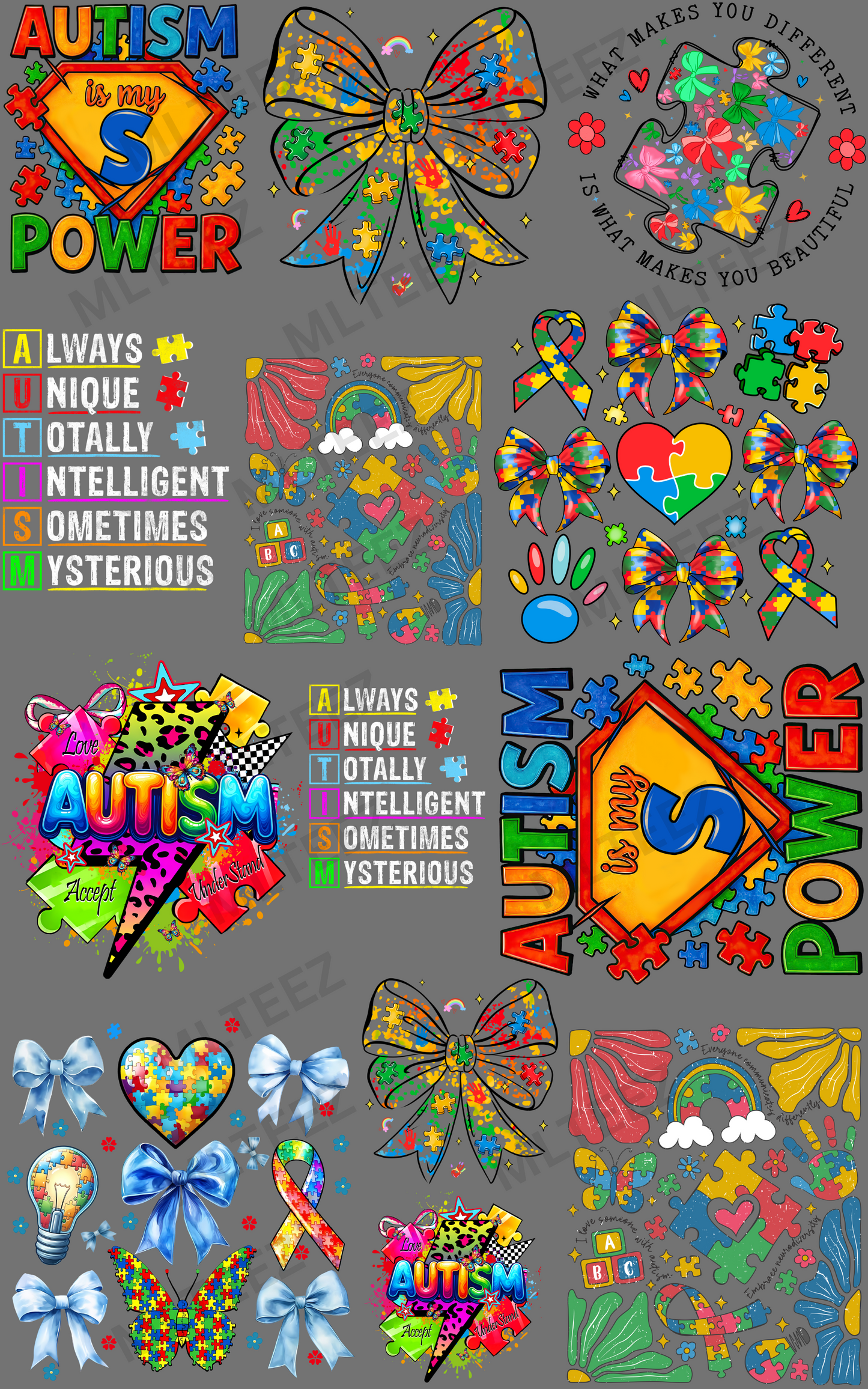 AUTISM (5) YOUTH PREMADE GANGSHEET - 22X36 DTF TRANSFERS - DIRECT TO FILM