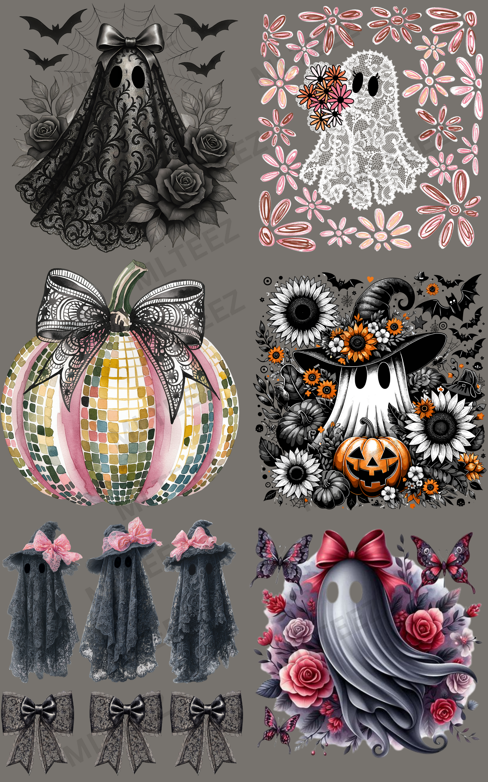 BLACK LACE HALLOWEEN GHOST PREMADE GANGSHEET - 22X36 DTF TRANSFERS - DIRECT TO FILM