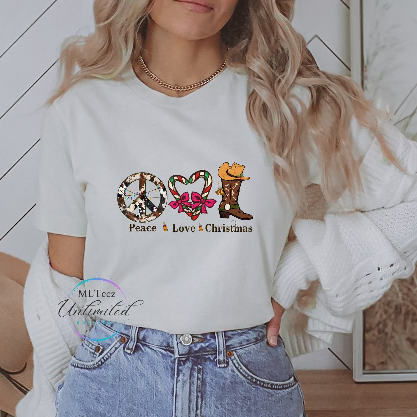 Cowboy Christmas Peace, Love, Christmas DTF Direct To Film