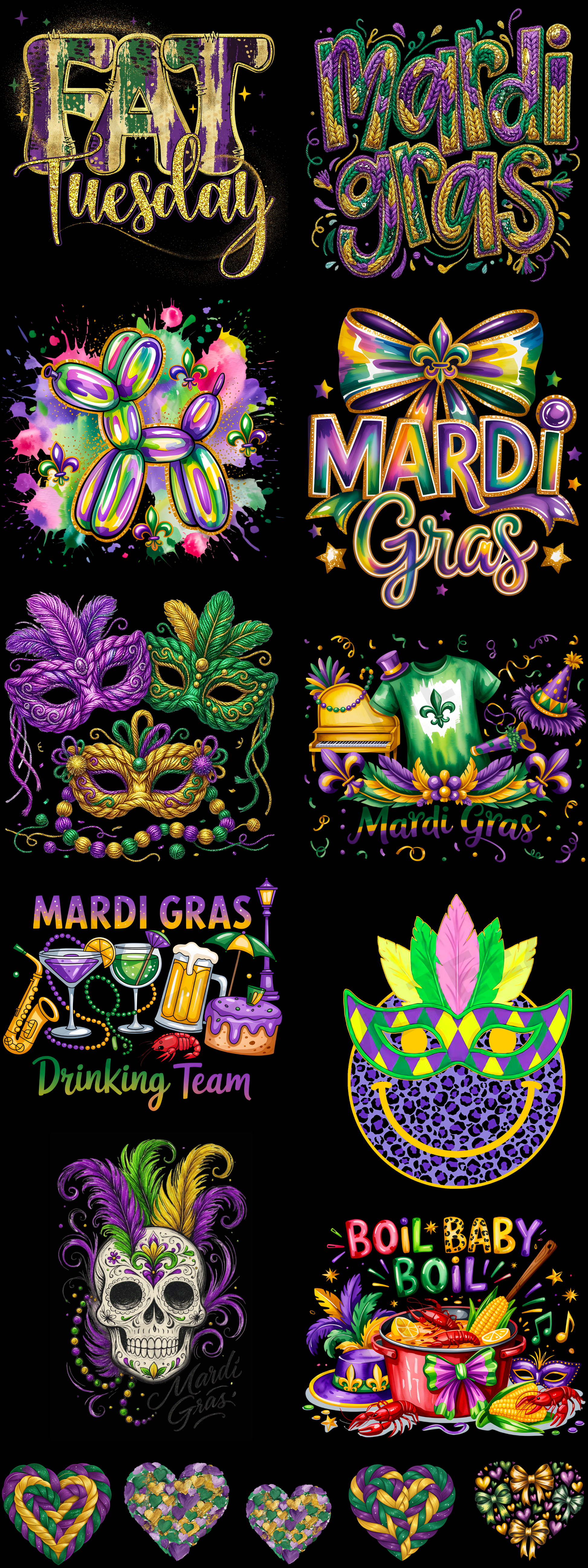 MARDI GRAS (2) (60 INCH) PREMADE GANGSHEET - 22X60 DTF TRANSFERS - DIRECT TO FILM