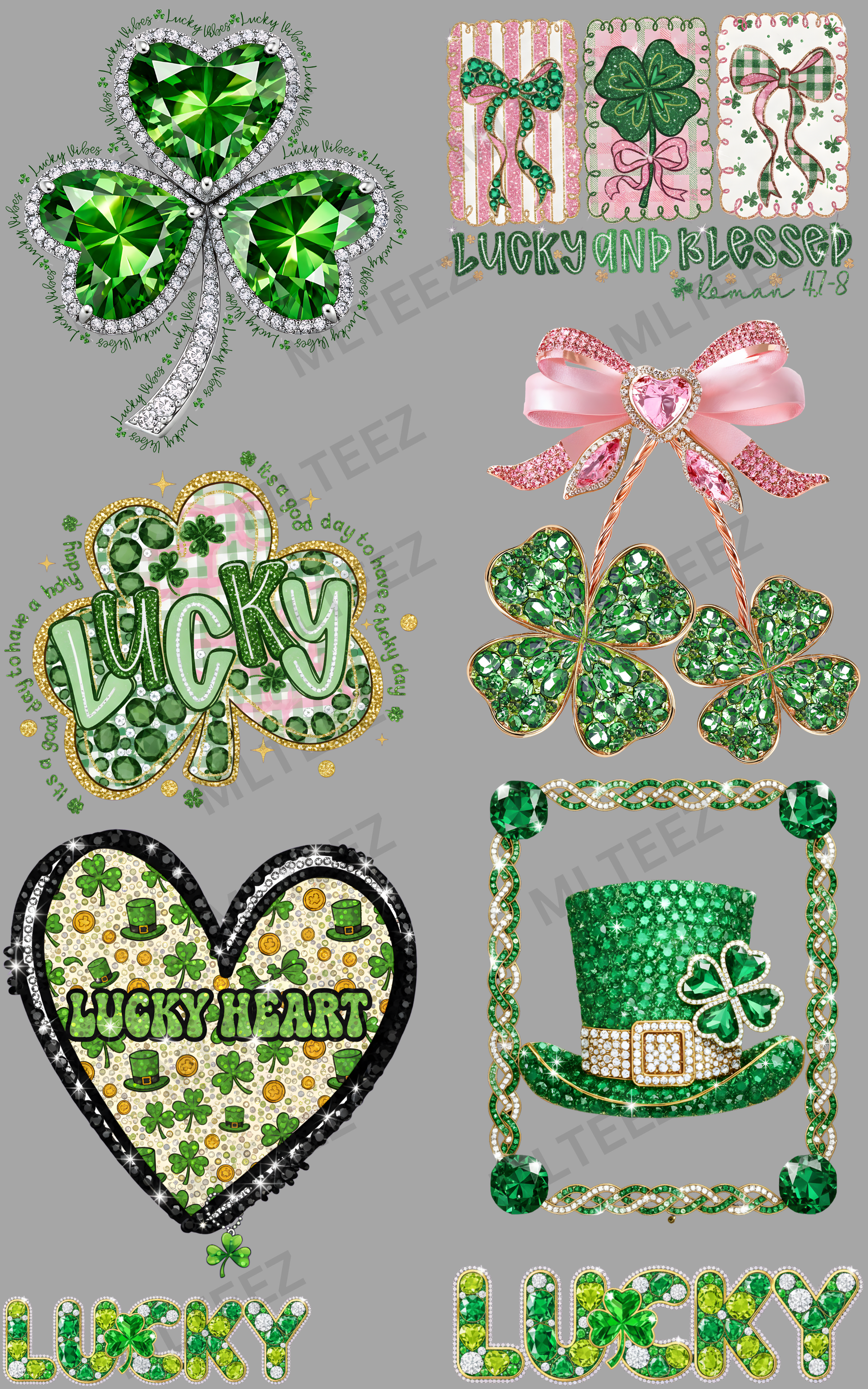 LUCKY SHAMROCK (2) (FAUX RHINESTONE) PREMADE GANGSHEET - 22X36 DTF TRANSFERS - DIRECT TO FILM