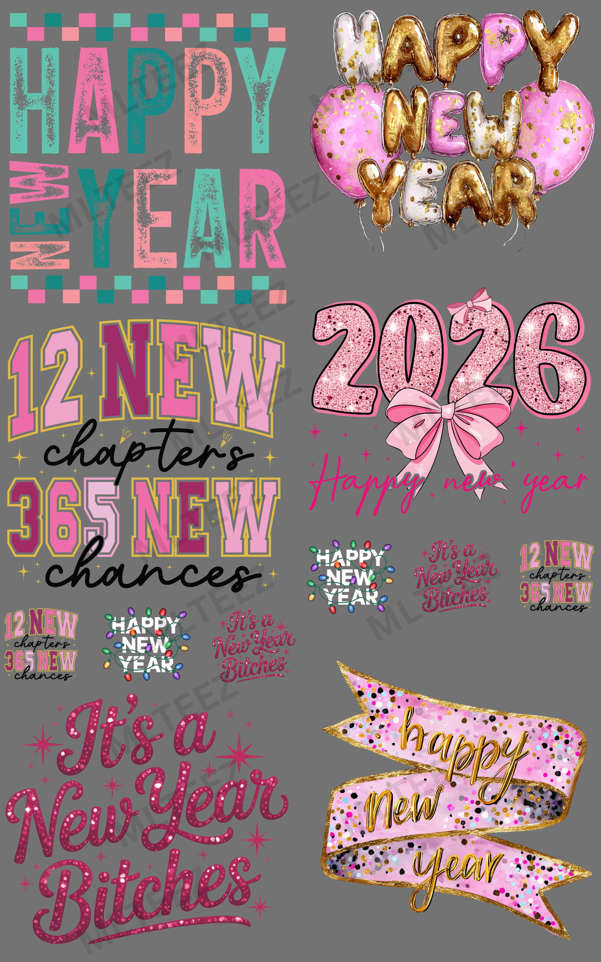 NEW YEAR 2026 (11) PREMADE GANGSHEET - 22X36 DTF TRANSFERS - DIRECT TO FILM
