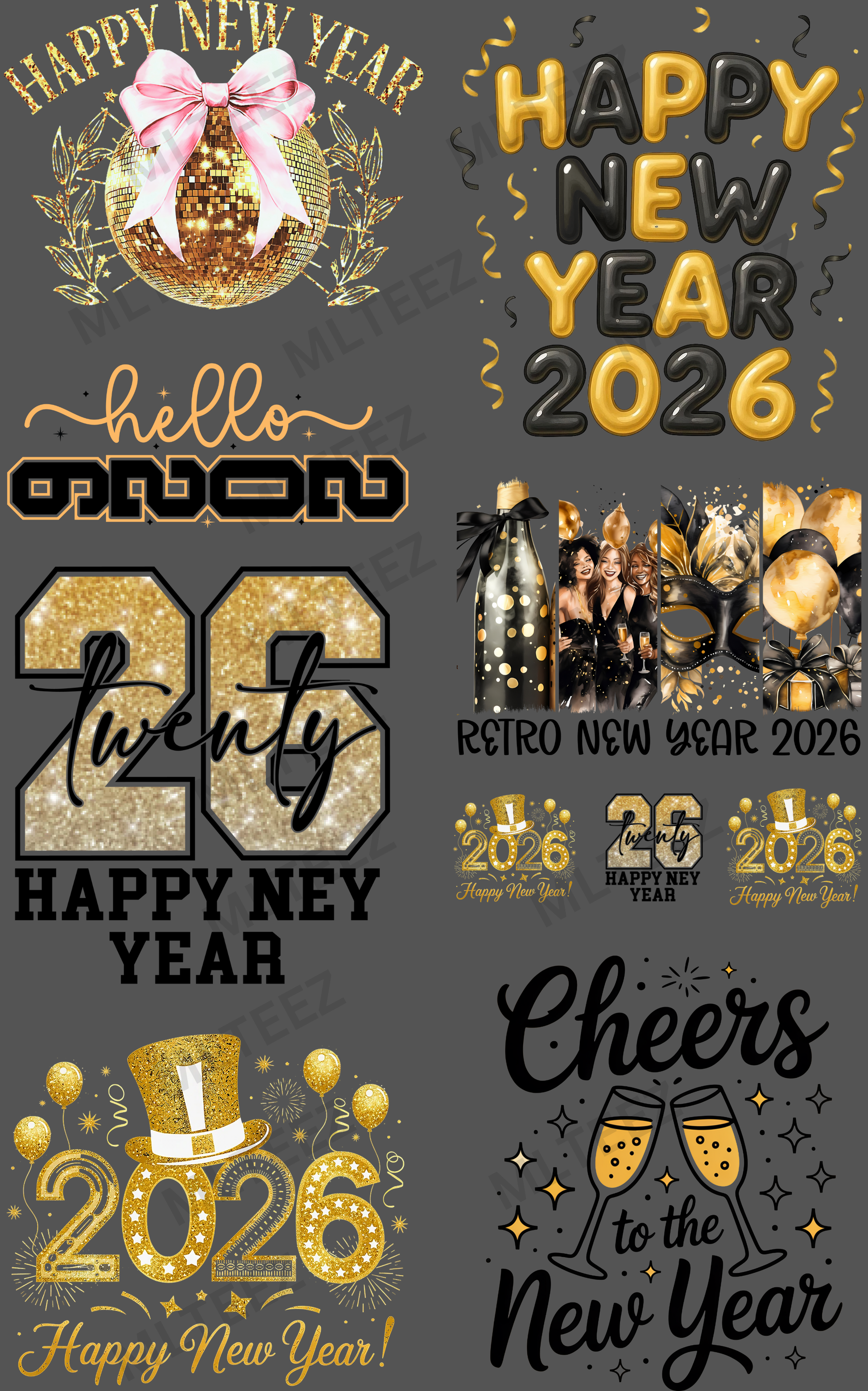 NEW YEAR 2026 (12) PREMADE GANGSHEET - 22X36 DTF TRANSFERS - DIRECT TO FILM