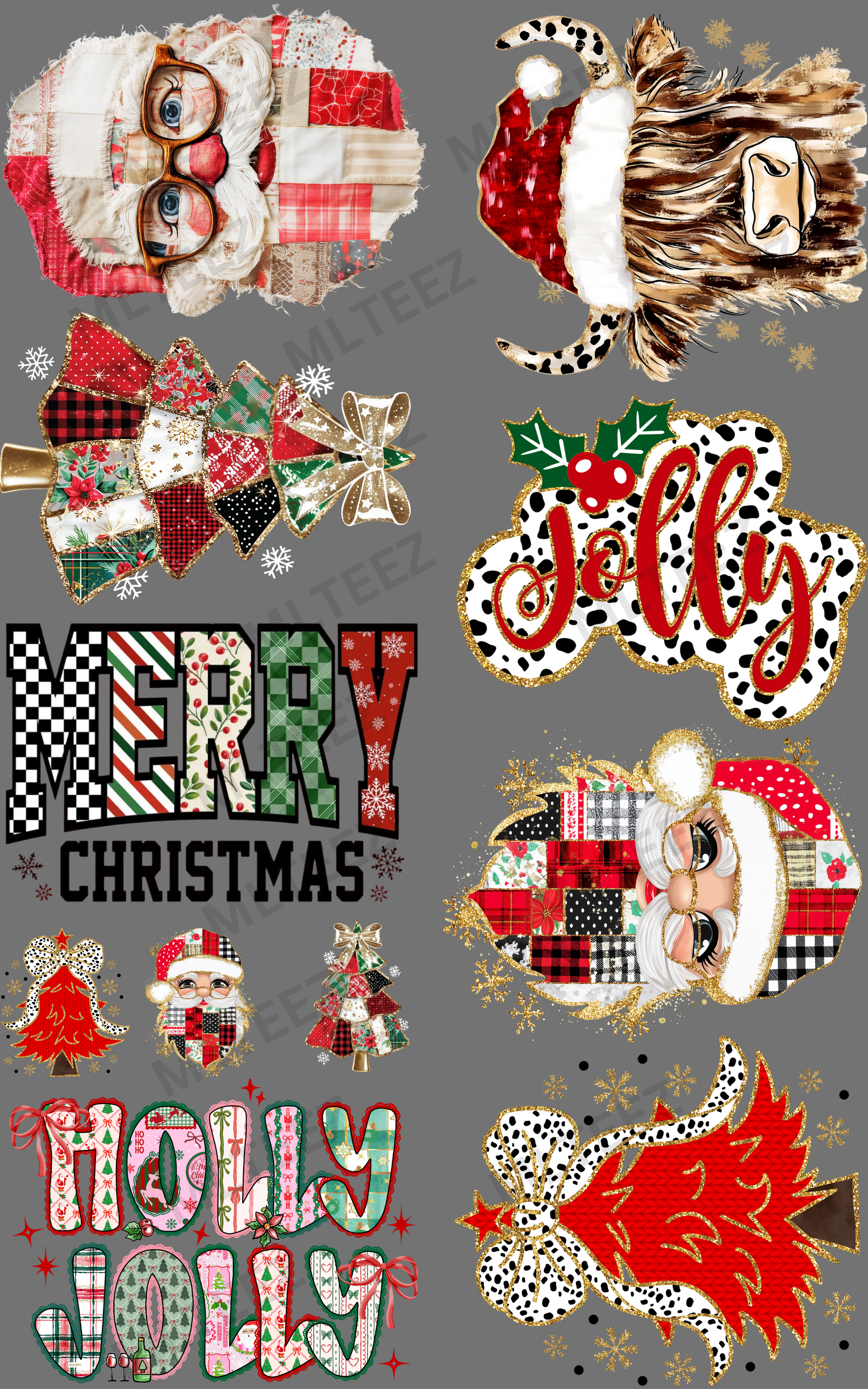 PATCH WORK SANTA & MOO COW PREMADE GANGSHEET - 22X36 DTF TRANSFERS - DIRECT TO FILM
