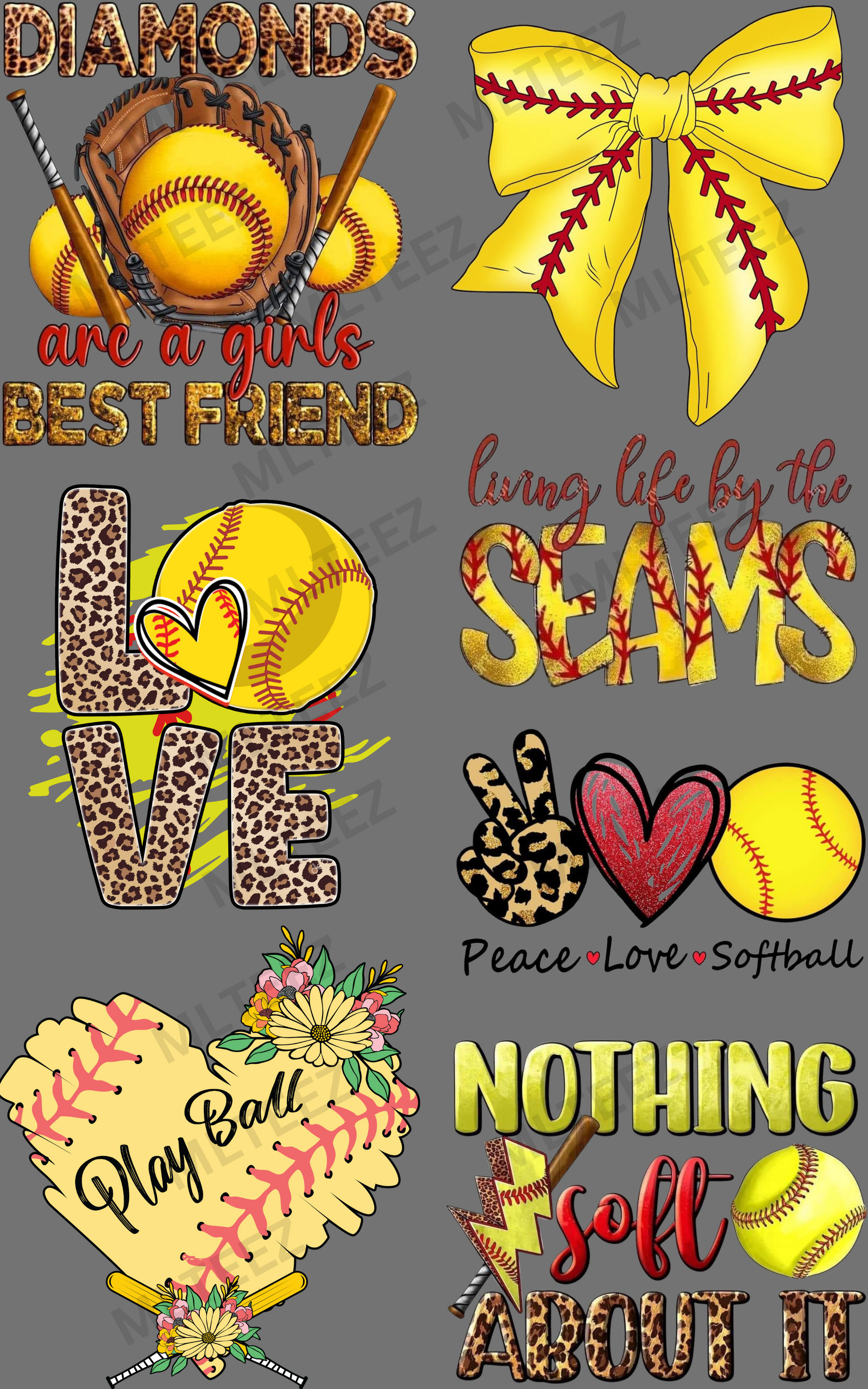 SOFTBALL (2) PREMADE GANGSHEET - 22X36 DTF TRANSFERS - DIRECT TO FILM