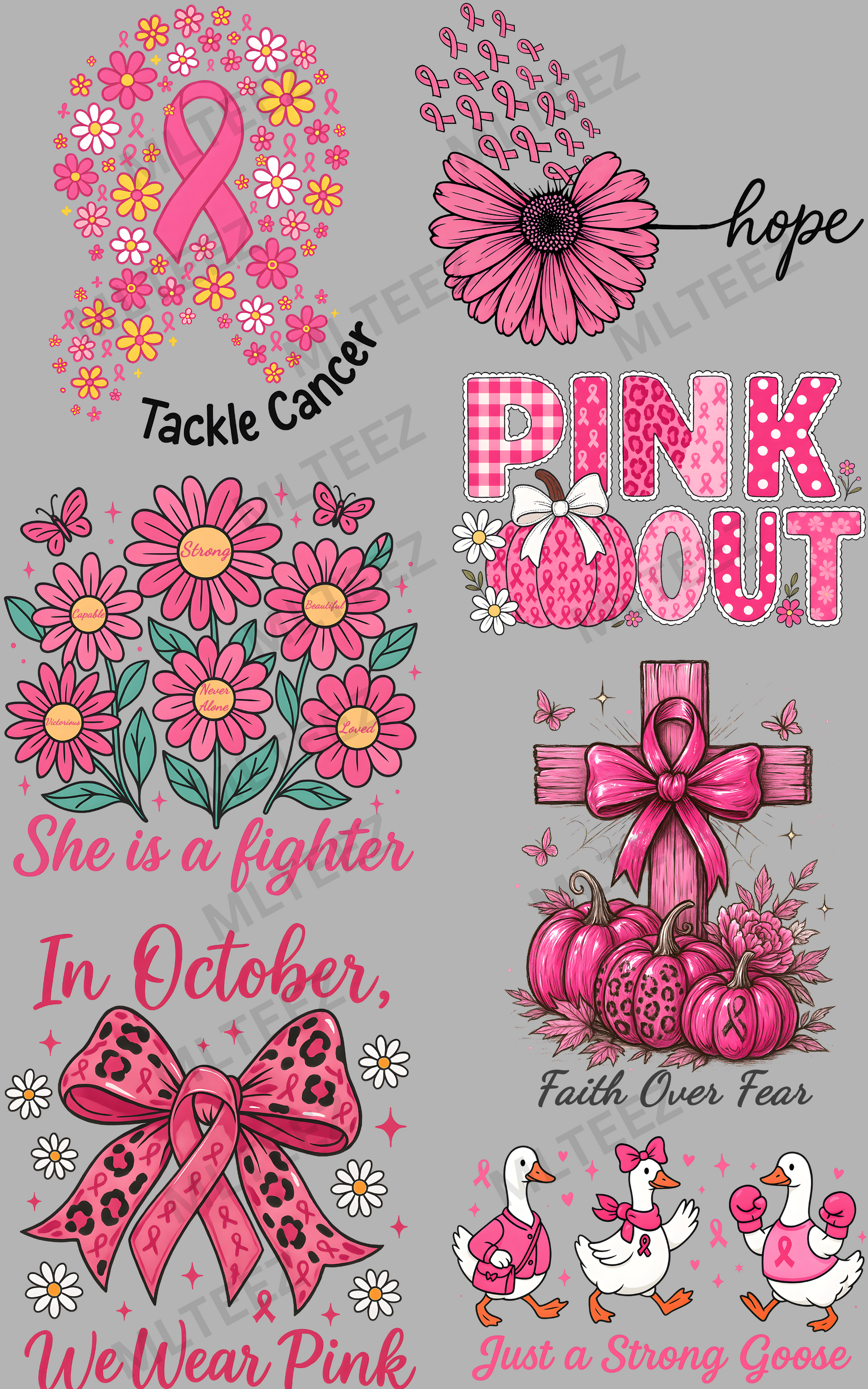 TACKLE CANCER (1) PREMADE GANGSHEET - 22X36 DTF TRANSFERS - DIRECT TO FILM