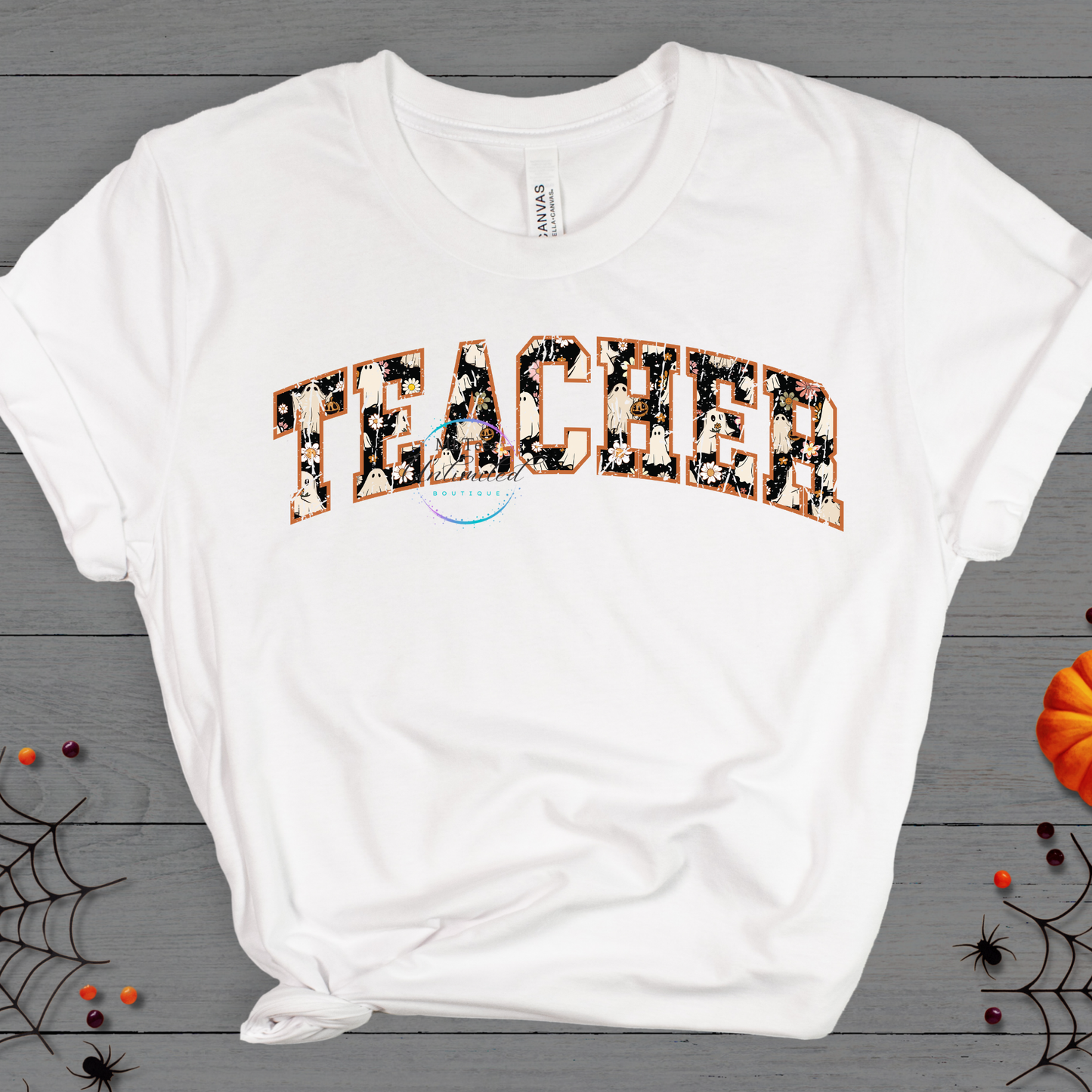 Teacher (Ghost/Flowers) Distressed DTF Direct To Film